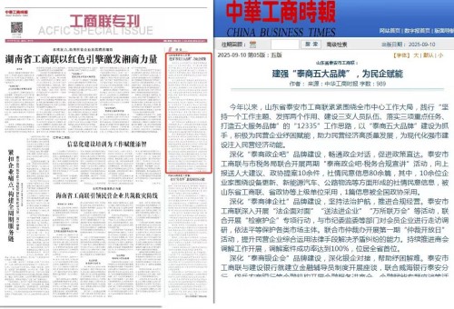 9月10日,中华工商时报以《山东泰安市工商联:建强“泰商五大品牌”,为民企赋能》为题,报道了我市助力民营经济高质量发展的经验做法。