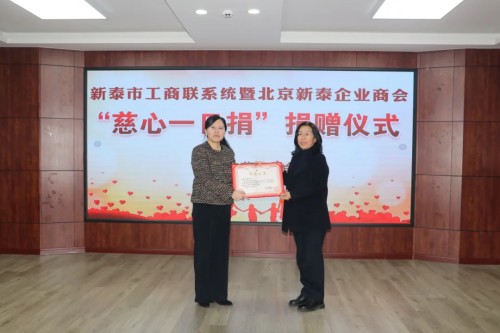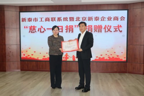 捐赠仪式上,赵雪副市长代表新泰市慈善总会,依次向北京新泰企业商会、新泰市女企业家商会及市工商联颁发了捐赠证书。北京新泰企业商会与新泰市慈善总会签订了助学项目定向捐赠协议。