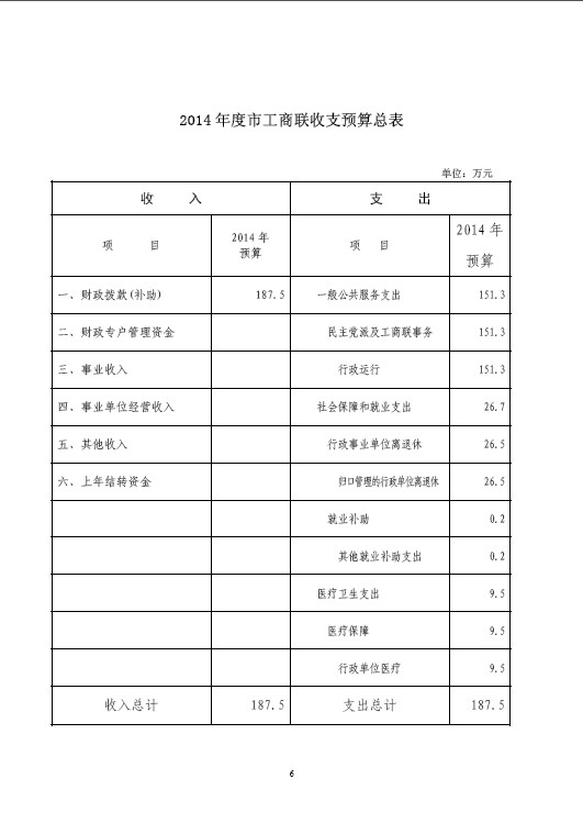 泰安市工商联2014年度经费预算